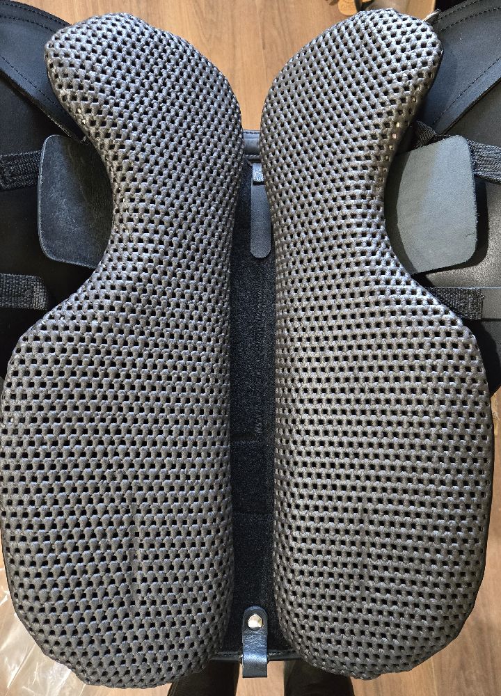 Historically, Ghost panels had 3 layer inserts. Formo - a thin, stiff material to aid in distributing weight along the length. 2cm dense foam - a composite foam that assists in weight distribution and maintains the same properties (tested) from 0 to 120 degrees F. The third layer is potentially optional and can be 1 or 2cm thick black foam. It's soft, flexible, less dense which can add a little more thickness for spine clearance or softness for "bonier" horses and kind of just feels good in the hands. But it will squish and require the rider to additionally check girth tightness after mounting and for a light rider, keeps them a little perched, especially in a new saddle.