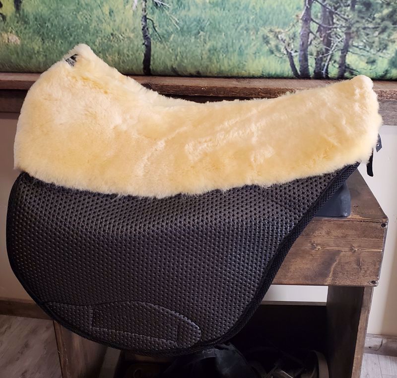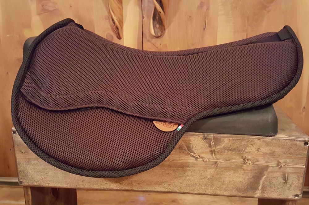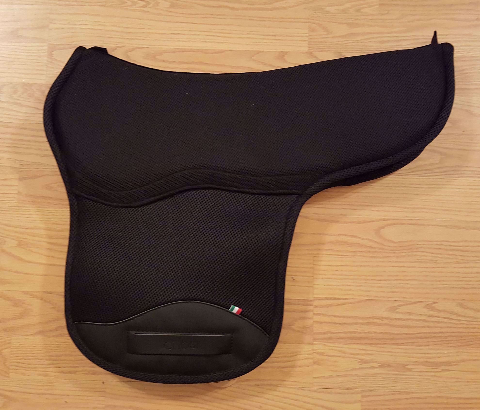 Ghost makes an extremely nice pad, especially for the very reasonable price. Many people buy these for other saddles including BMSS, Freeform, and even treed saddles. Bottom material options include sympanova (a soft rubber, easy to clean, breathable), black, brown or white wool blend, and an amazing medicinal sheepskin. I recommend 1cm inserts with sheepskin unless rider is over 185, and for other bottom materials unless over 165 or horse's spine is well protected.