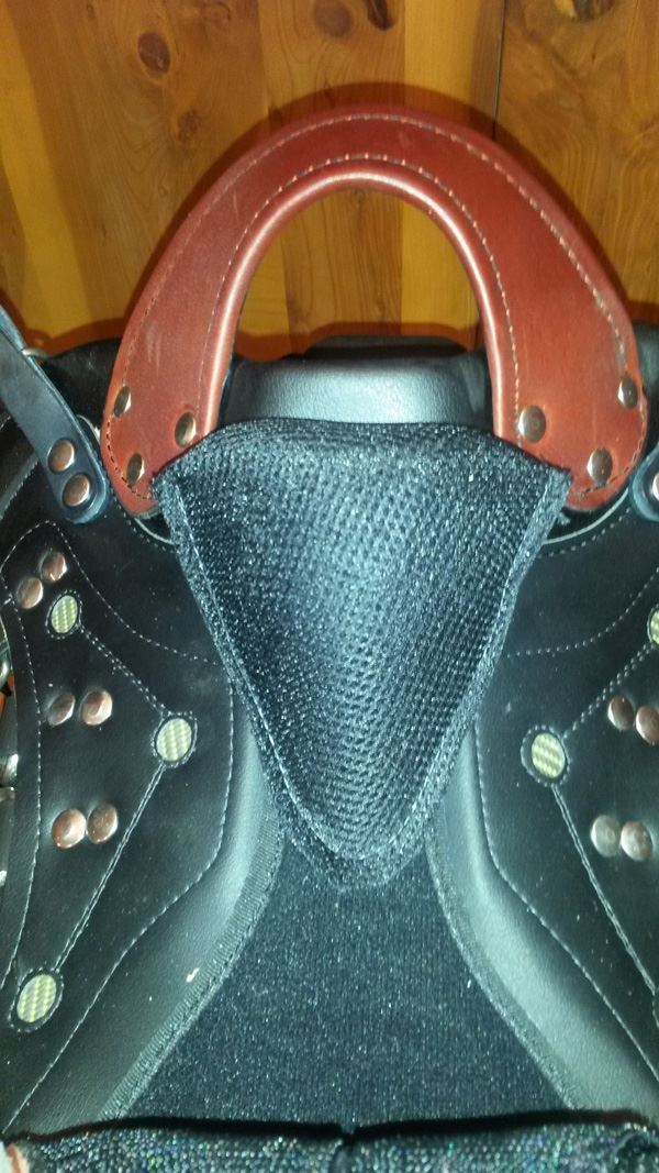 Can affect the rider's pelvis tilt, refines the twist, and slightly deepens the seat. It goes under the front of the seat, with the wide side toward the pommel and the pointy side toward the rider. It can be moved forward/back for a greater effect.