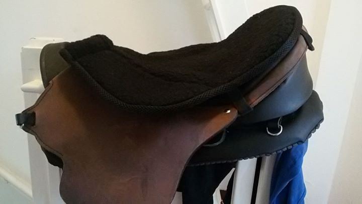 Ghost makes an extremely nice pad, especially for the very reasonable price. Many people buy these for other saddles including BMSS, Freeform, and even treed saddles. Bottom material options include sympanova (a soft rubber, easy to clean, breathable), black, brown or white wool blend, and an amazing medicinal sheepskin. My favorite material is the new Vella. It is synthetic but seems to be doing well for many endurance riders. It's a short fiber, medicinal quality materia which is easy to clean and doesn't clump like most wools which helps to avoid heat retention.