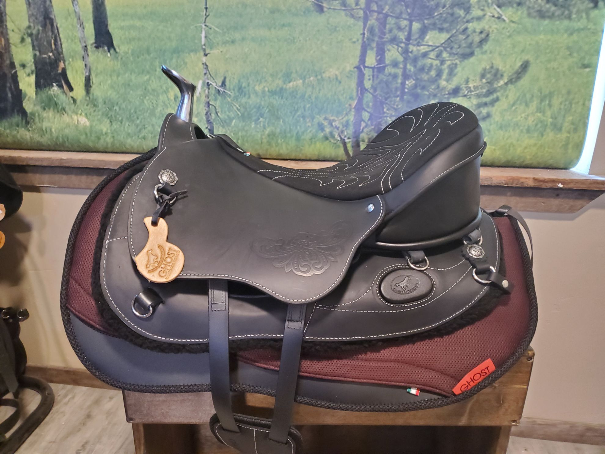 The western skirt was redesigned to have incorporated panels for a slimmer, closer contact feel. It comes with the Western saddle, but can also be added to the Florac, Quevis, and Quilty models for a western look.